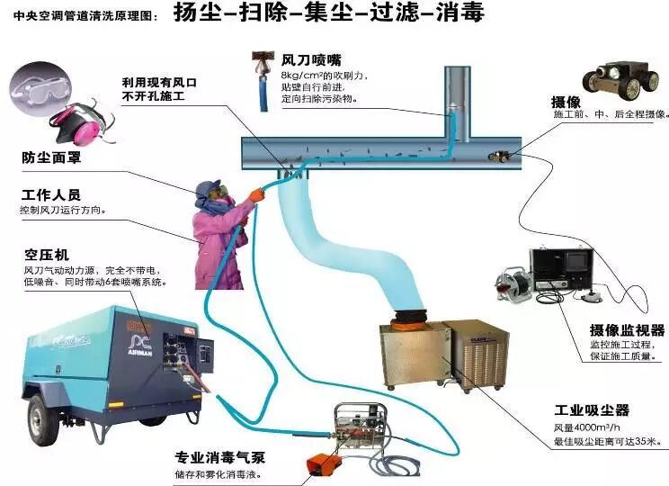 由于中央空调主宰着现代楼宇内部空气的新陈代谢,被人们形象地称为现代楼宇之“肺”。肺叶娇嫩,易被邪侵,故又称“娇脏”,同样的道理,中央空调也很容易被污垢细菌侵入。中央空调机组长期运行,通风系统极易污染,加之清洁不及时等原因,使管道中存留了大量尘土沙砾、炭类物质、结晶体等。一旦这些灰尘当中附着有细菌、真菌、酵母等微生物时,很容易使人患过敏或是呼吸系统疾病。